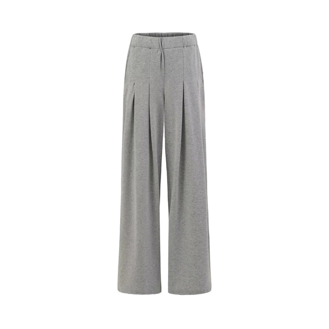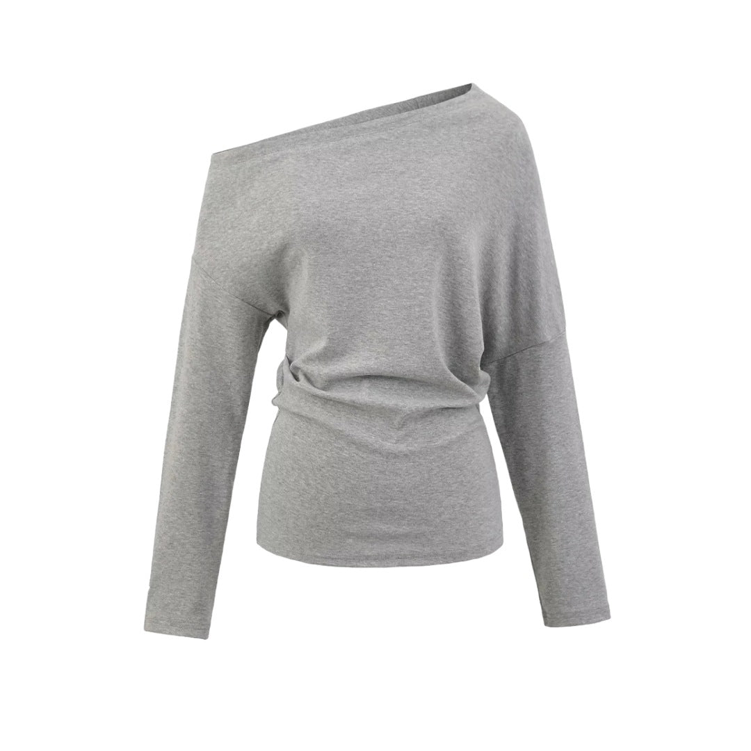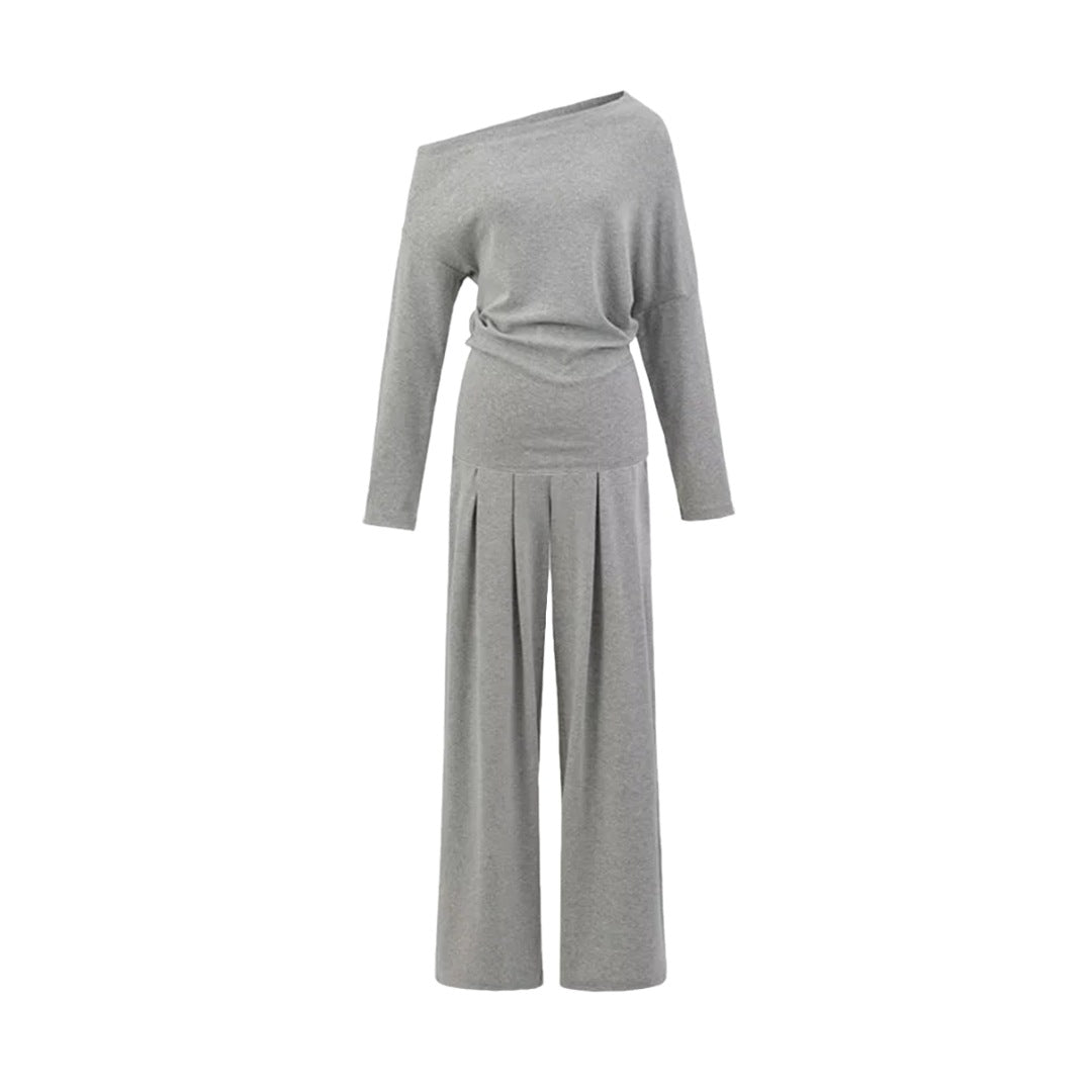 個性斜肩寬鬆休閒長褲套裝(淺灰)