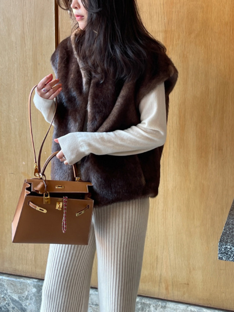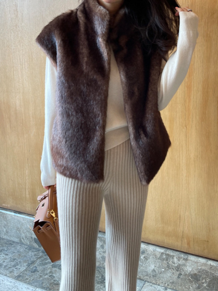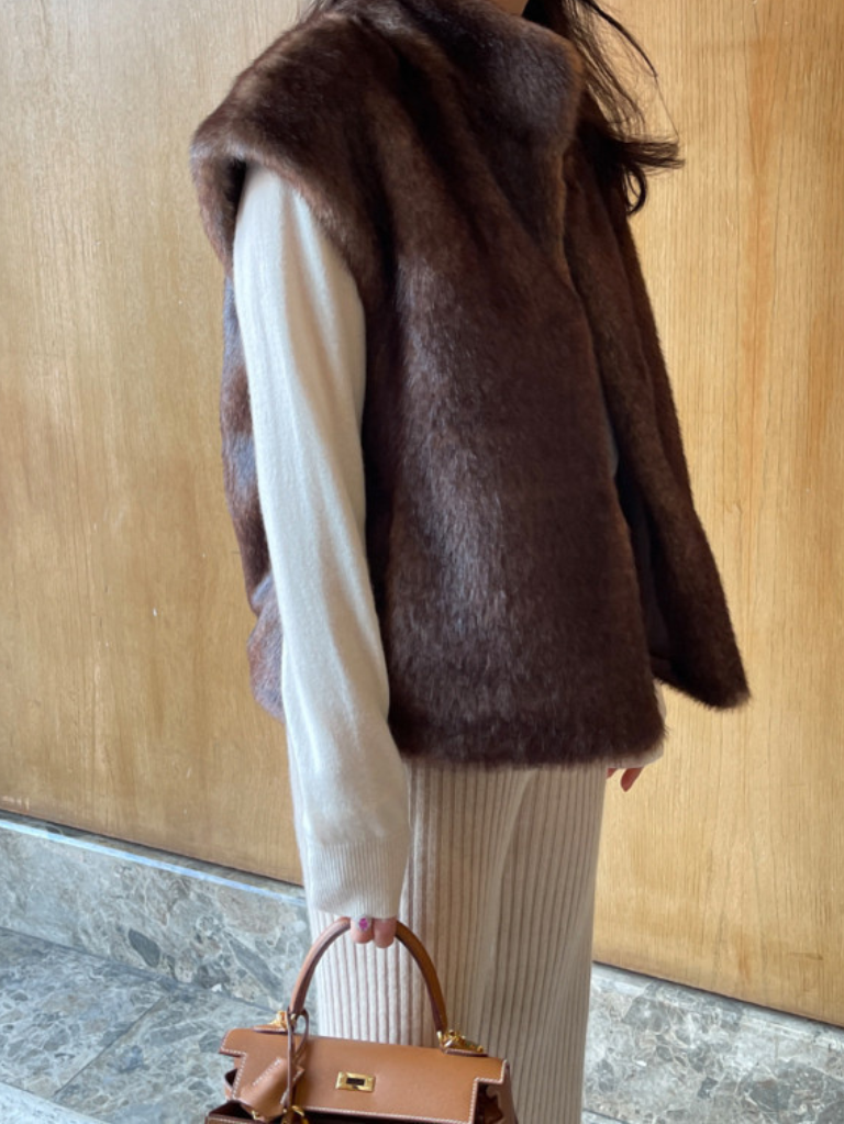 時尚Chic毛毛皮韓版馬甲外套(咖)LI1003
