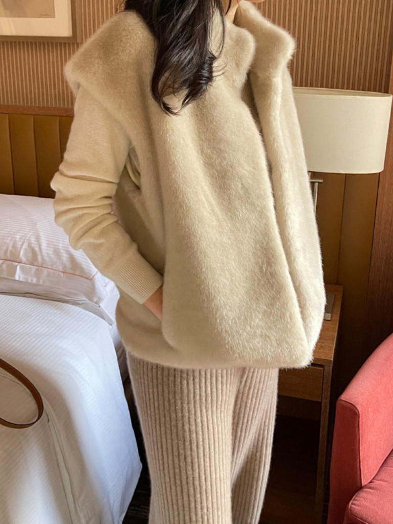 時尚Chic毛毛皮韓版馬甲外套(杏)LI1003