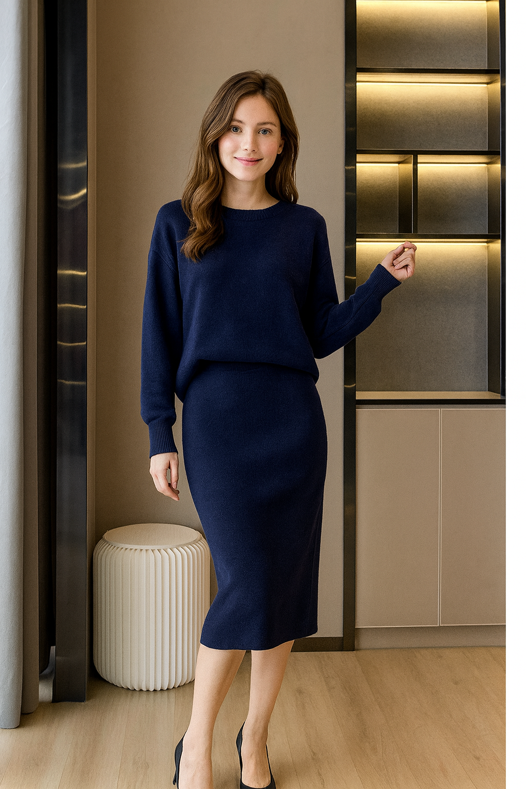 氣質顯瘦針織毛衣套裝K1046(藏青)