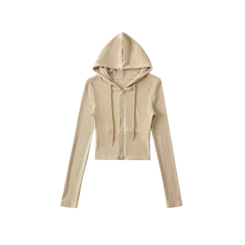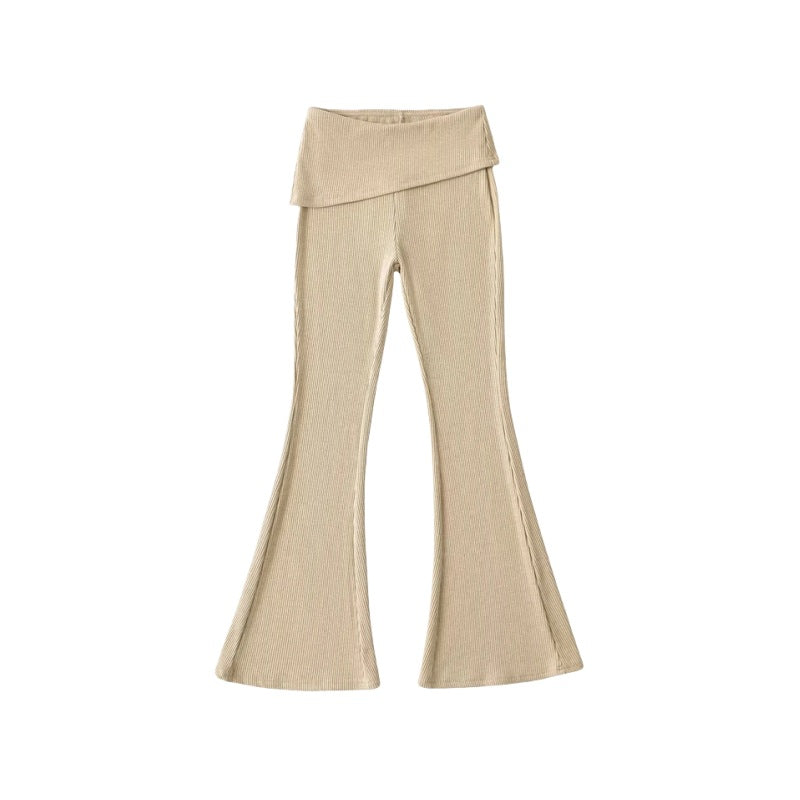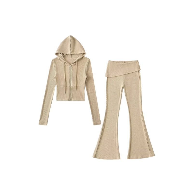 磨毛拉鍊修身微喇長褲套裝(卡其)