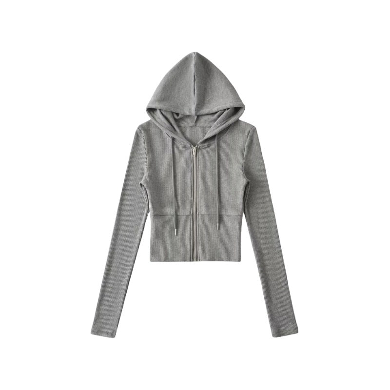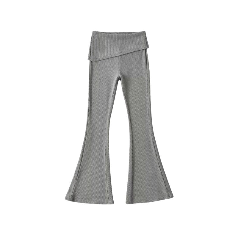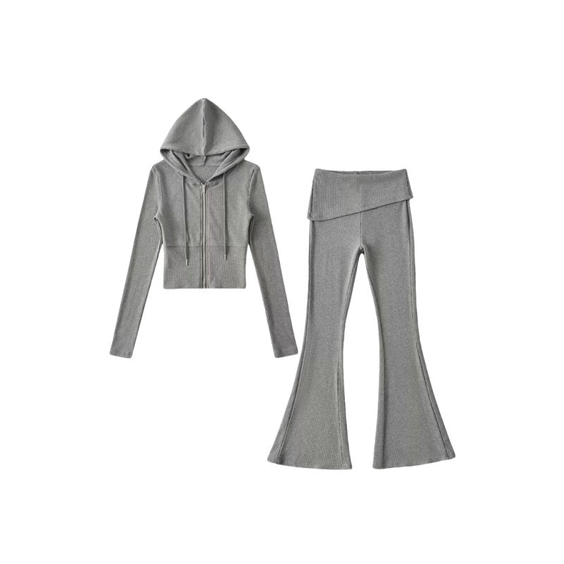 磨毛拉鍊修身微喇長褲套裝(灰)
