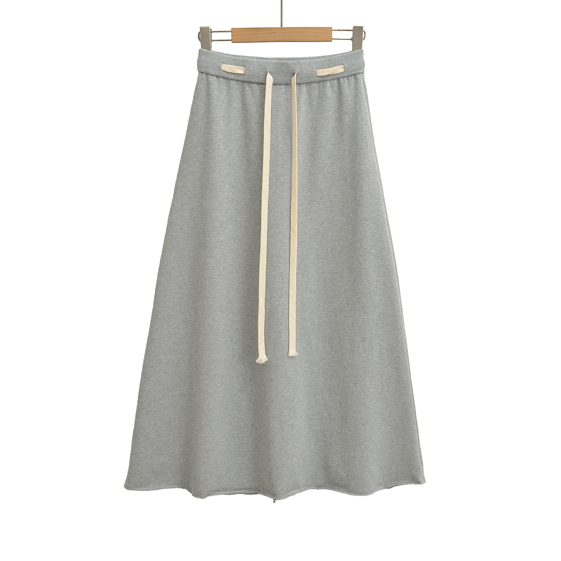 秋季新款美式復古風撞色腰長裙(淺灰)