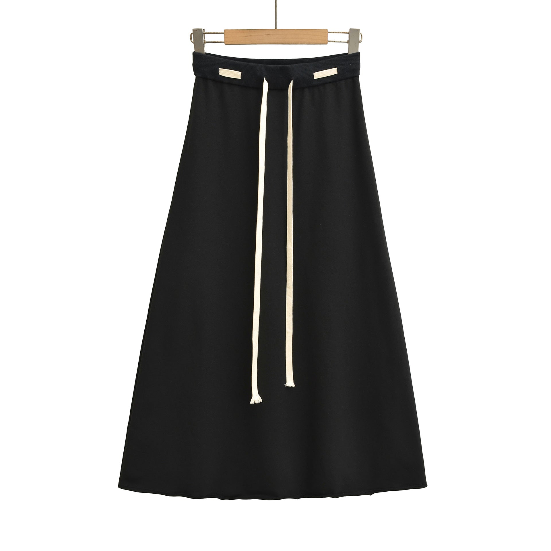 秋季新款美式復古風撞色腰長裙(黑)
