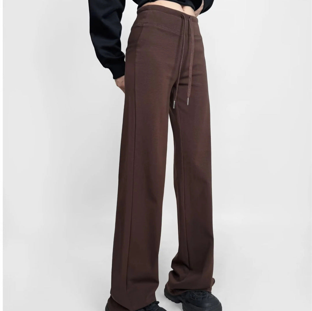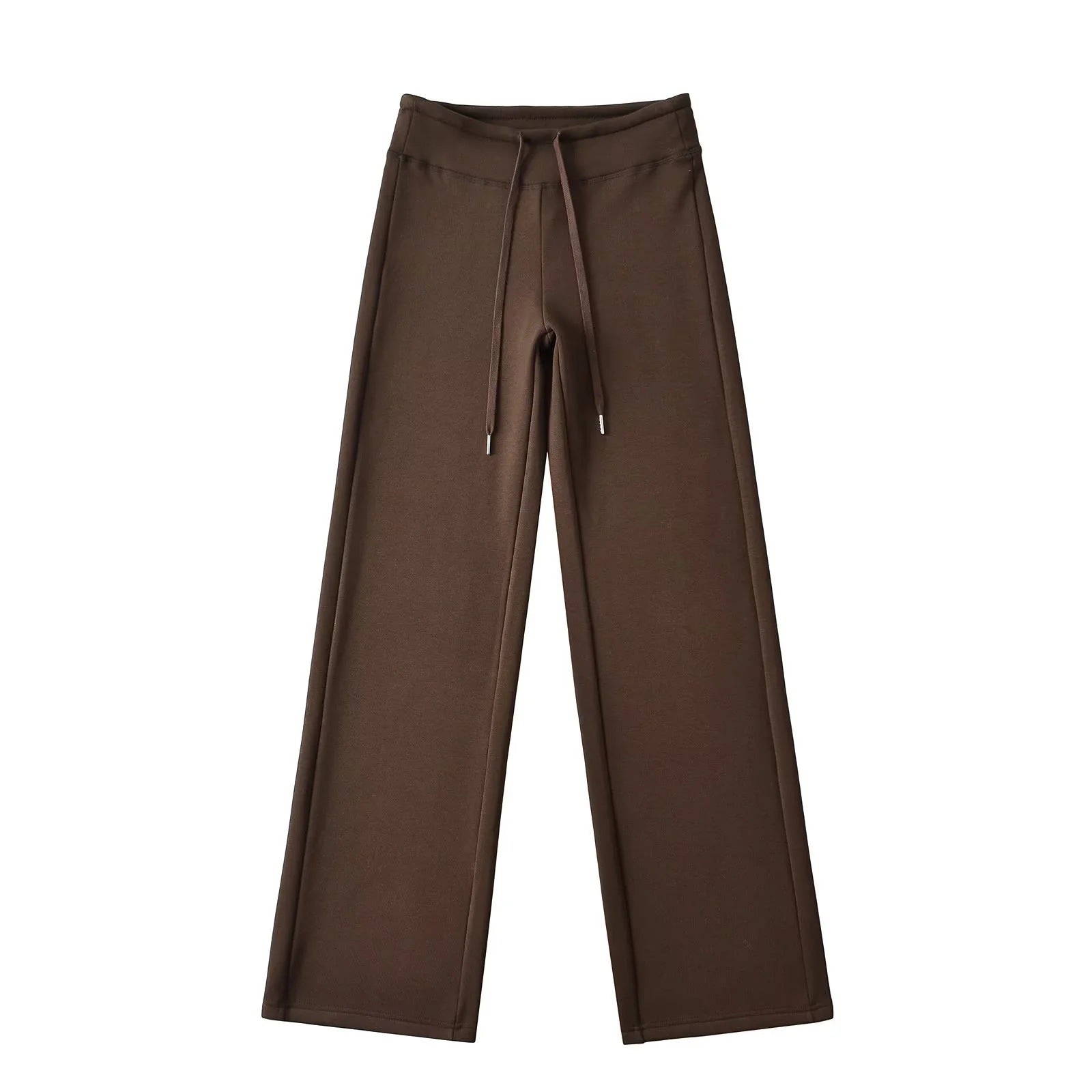 簡約純色鬆緊直筒拖地長褲(加厚款)深咖