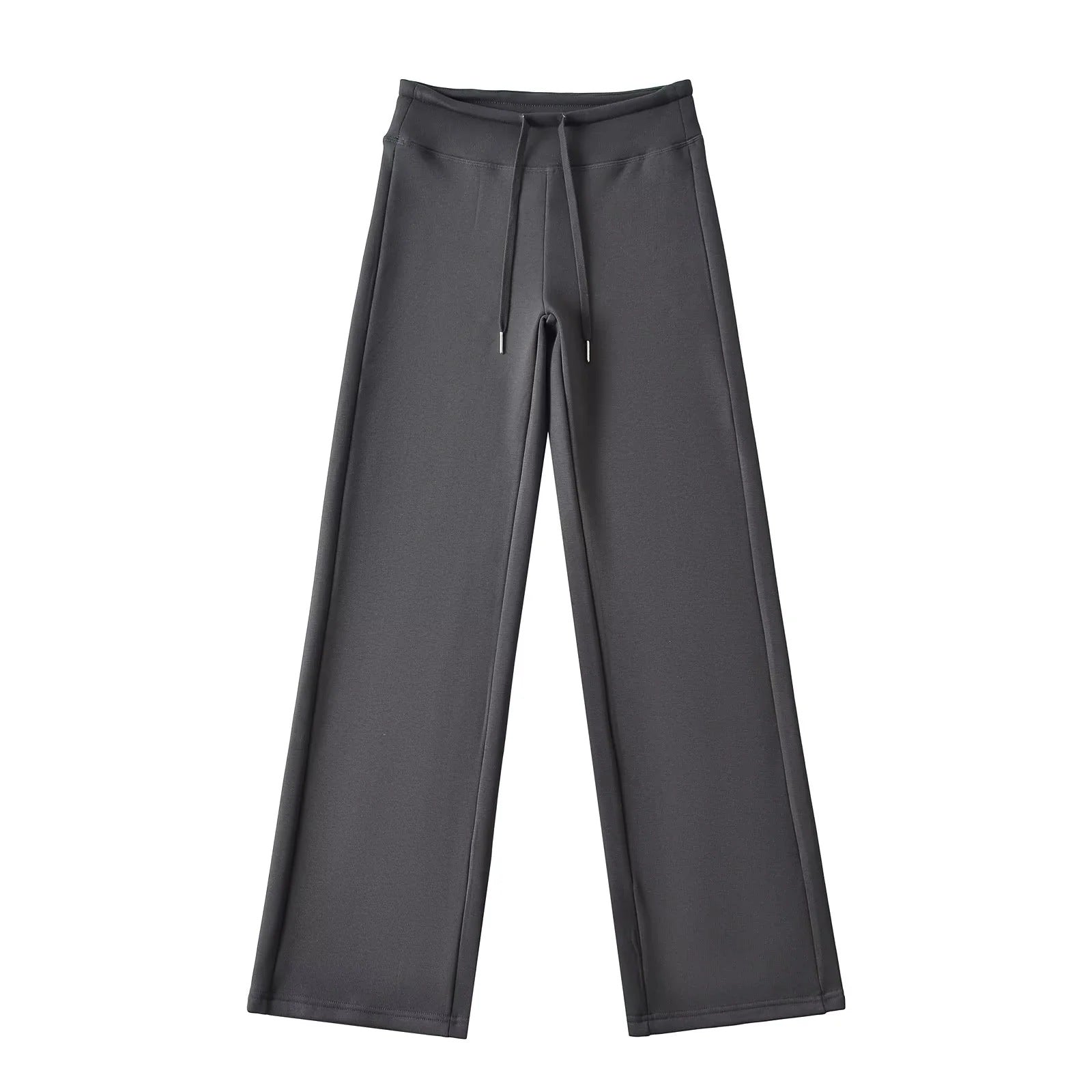 簡約純色鬆緊直筒拖地長褲(加厚款)深灰