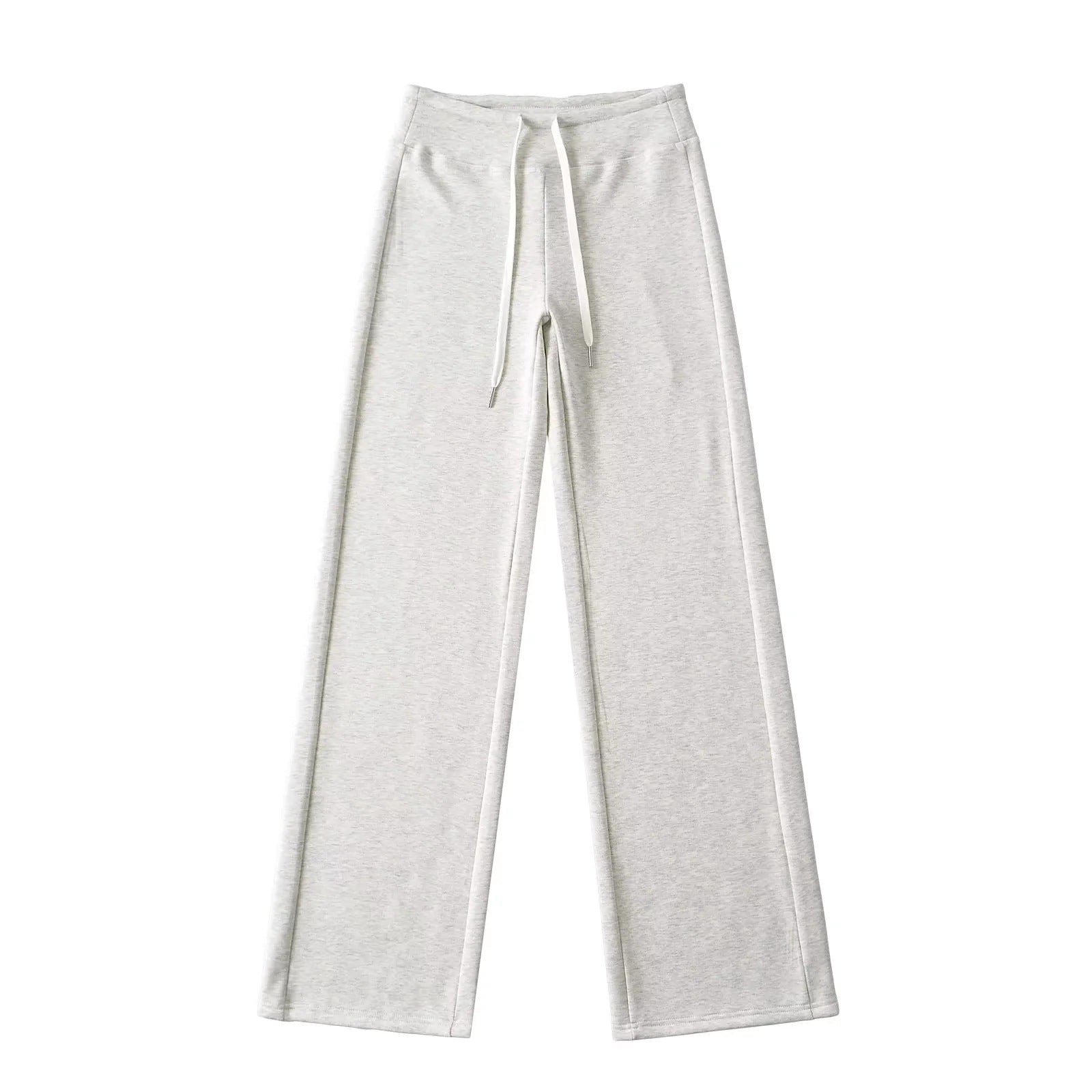 簡約純色鬆緊直筒拖地長褲(加厚款)白
