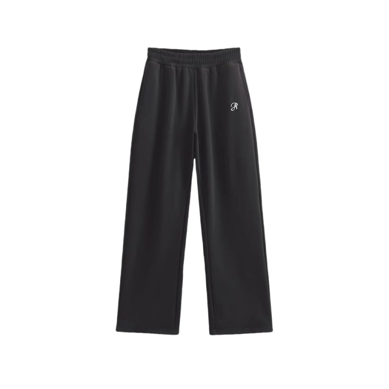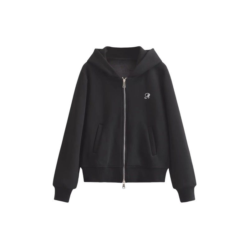 連帽拉鍊加絨刺繡寬鬆休閒套裝(黑)