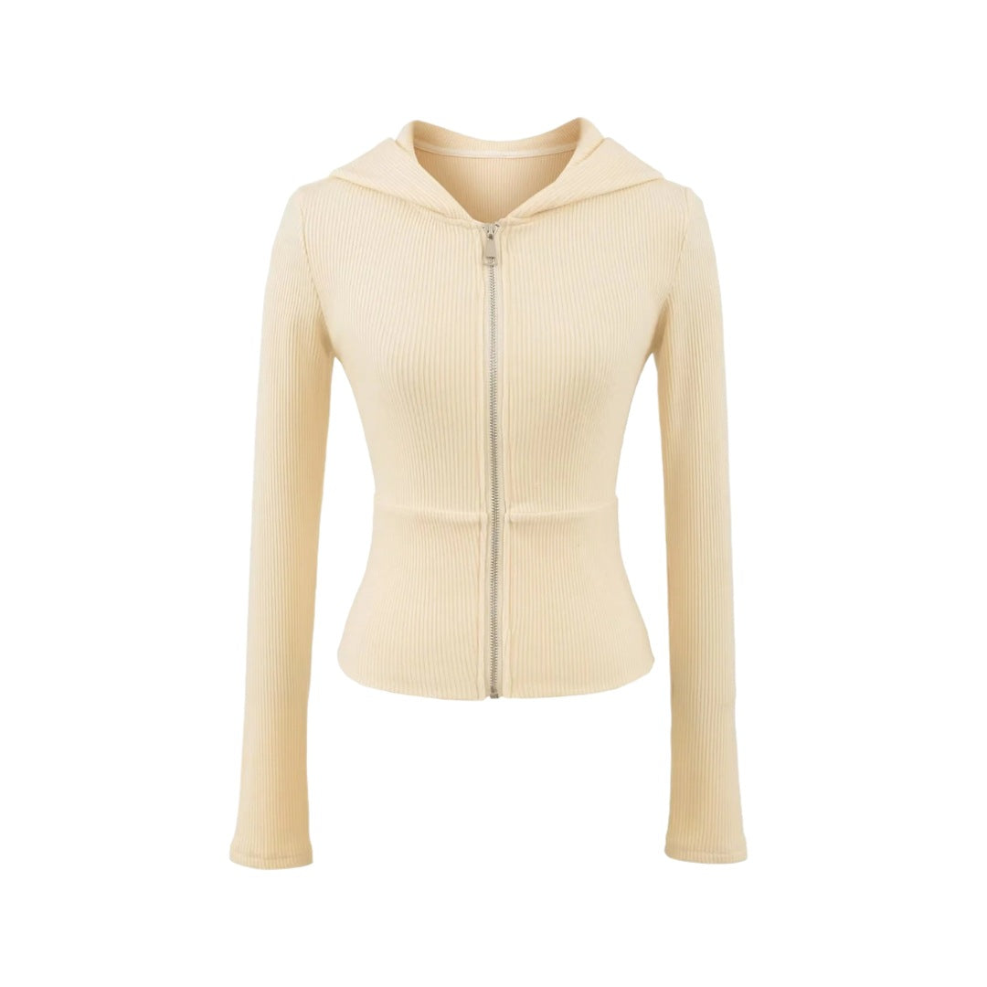 高腰性感連帽拉鍊微喇叭褲套裝(杏)
